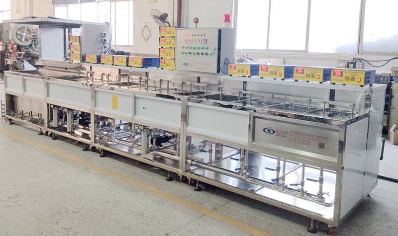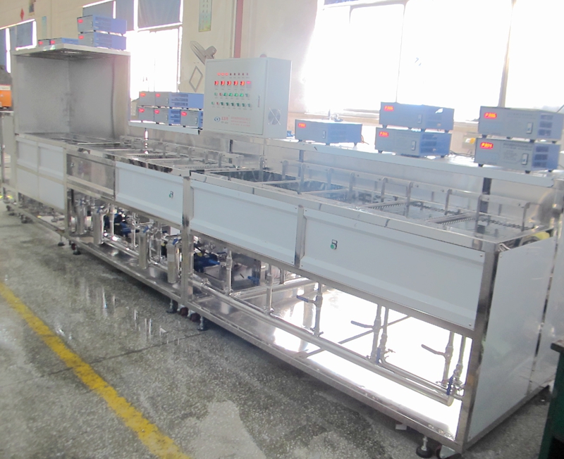 設備共有12個功能槽,配置有拋動系統、循環過濾系統、自動恒溫系統、超聲波清洗系統、定時系統、噴淋系統、慢拉脫水系統、熱風烘干系統等。